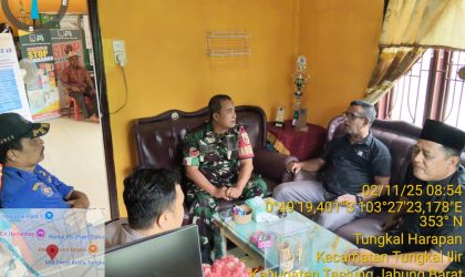 Kuala Tungkal, Kodimtanjab.com – Babinsa Koramil 419-02/Tungkal Ulu, Sertu Choiron, melaksanakan komunikasi sosial (komsos) bersama…
