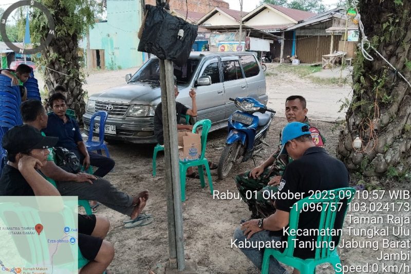 Kuala Tungkal, Kodimtanjab.com – Babinsa Koramil 419-02/Tungkal Ulu, Sertu Daryun, melaksanakan kegiatan Komunikasi Sosial (Komsos) bersama warga Dusun II Desa Taman Raja, Kecamatan Tungkal Ulu, Rabu (1/10/2025).