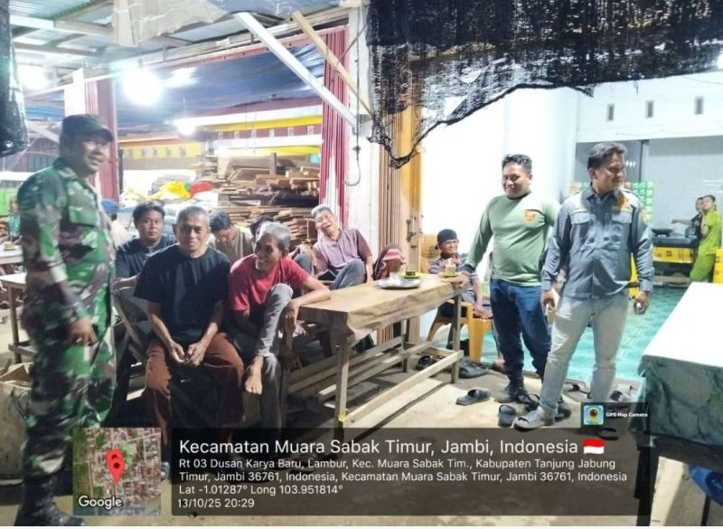 Kuala Tungkal, Kodimtanjab.com – Dalam rangka menjaga keamanan dan ketertiban lingkungan, Babinsa Koramil 419-01/Muara Sabak Timur melaksanakan patroli malam bersama Linmas di Desa Lambur Luar, Kecamatan Muara Sabak Timur pada Senin malam (13/10/2025) pukul 20.20 WIB hingga selesai.