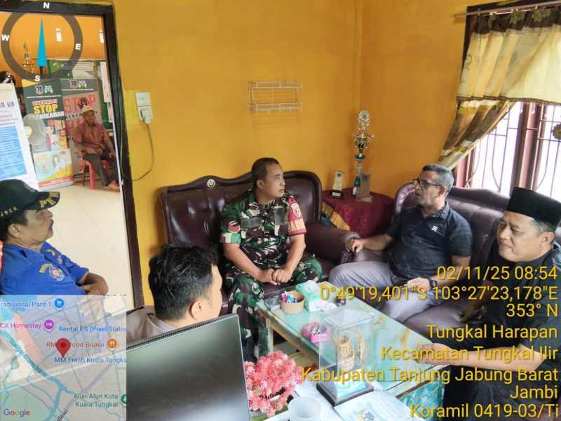 Kuala Tungkal, Kodimtanjab.com – Babinsa Kelurahan Tungkal Harapan, Koramil 419-03/Tungkal Ilir, Koptu Ade Zuhri, melaksanakan kegiatan Komunikasi Sosial (Komsos) bersama warga di Kelurahan Tungkal Harapan, Kecamatan Tungkal Ilir, Kabupaten Tanjung Jabung Barat, pada Minggu (2/11/2025). Kegiatan ini bertujuan mempererat silaturahmi dan menjalin hubungan kekeluargaan yang baik antara Babinsa dan masyarakat di wilayah binaannya.