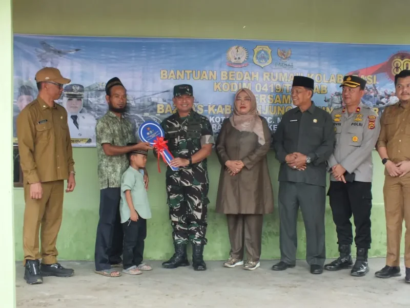 Kuala Tungkal, Kodimtanjab.com – Dalam rangka memperingati HUT ke-80 TNI tahun 2025, Kodim 0419/Tanjab meresmikan sekaligus menyerahkan kunci rumah tidak layak huni (RTLH) yang telah selesai direnovasi di Desa Kota Raja, Kecamatan Muara Sabak Timur, Kabupaten Tanjung Jabung Timur, Kamis (29/9/2025).