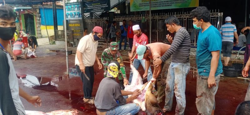 Kuala Tungkal, kodimtanjab.com – Salah satu tugas Babinsa Koramil 419-03/Tungkal Ilir, Serma Badrul ikut serta berperan aktif memberikan pendampingan dan membantu pelaksanaan penyembelihan hewan kurban dalam rangka Idul Adha 1441 H di Masjid Sepakat Kel. Tungkal IV Kota Kec.Tungkal Ilir Kab. Tanjab Barat, Sabtu (1/8/20).